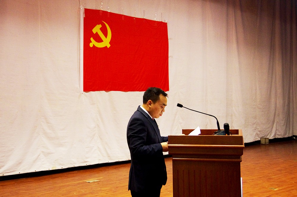 大会在全体党员同志奏唱国歌中开幕。随后,党委书记樊勇同志作工作报告,他首先对公司党组织的结构和党员现状进行了介绍。报告中他阐述了党组织现阶段开展的各项工作,就党组织在政治领导、决策部署、贯彻上级指示、宣传先进精神、了解基层思想等方面发挥的作用进行详细的介绍。报告中他还追溯了从前财政公司和税务公司的光辉历史,同时也指出现在处于历史变革时代,机遇和挑战并存,呼吁全体党员同志发挥先锋模范带头作用,为党、为公司和公司的发展作出自己应有的贡献。