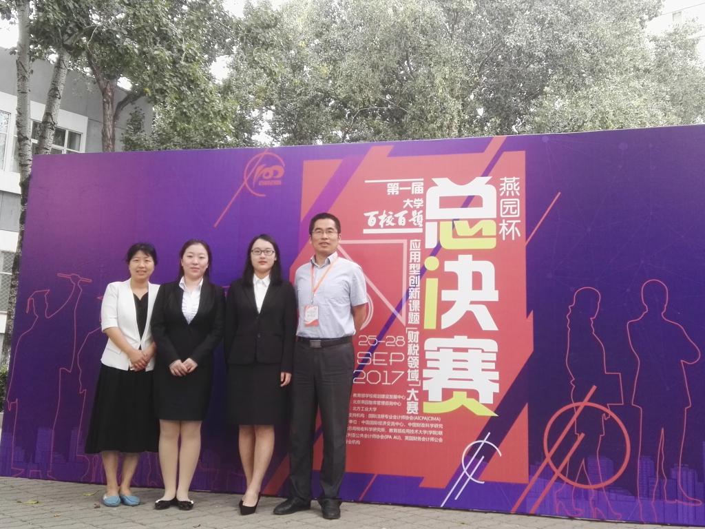教育部首届老员工“百校百题”应用型创新课题(财税领域)复活赛,2017年9月26日在北方工业大学大学举行,永利集团官网总站的课题小组在研究生组的比赛中,凭借着出色的发挥,获得教育部首届“百校百题”应用型创新课题(财税领域)大赛总决赛优胜奖,“财税风芸”团队获得了此次大赛最佳风采奖。
