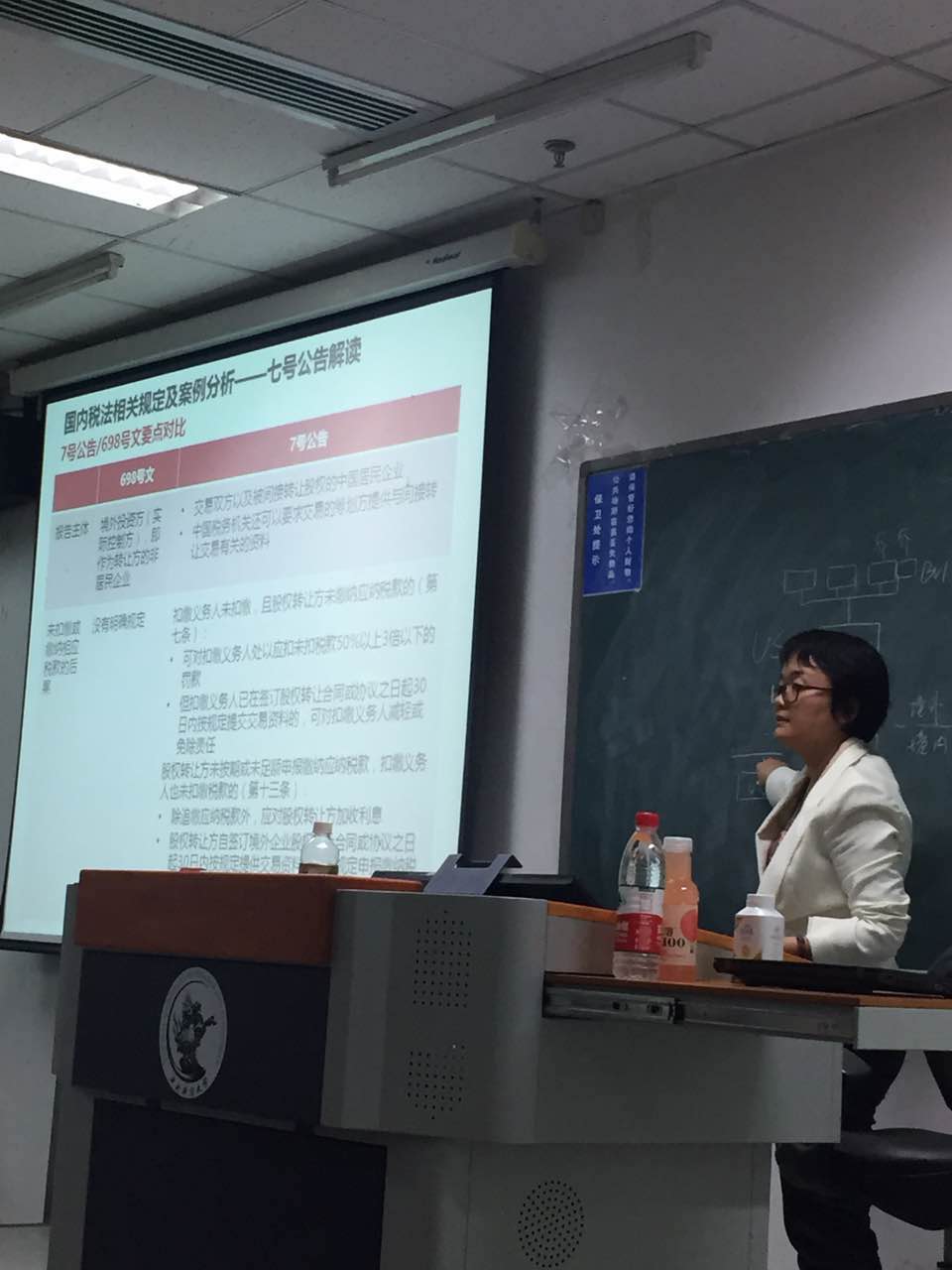张爱华老师分别从国内国际两方面来介绍非居民企业间接股权转让相关规定及案例分析。国内方面,张老师首先介绍了非居民企业间接股权转让的相关税法规定沿革,包括《企业所得税法》第四十七条、《企业所得税法实施条例》第一百二十条、国税函【2009】698号文件以及国家税务总局2015年7号公告。其次,张老师从出台背景、与698号文件的要点对比、公告范围等方面重点解读了7号文件并以图示的方式帮助同学们了解7号文件在实践中如何运用。最后,张老师通过江苏启东案例、深圳首例非居民个人间接转让境内股权税款、汕头案例这三个案例,简单讲解了相关法规文件的实际应用。国际方面,张老师亦从各国相关政策法规出发,介绍了一些国家针对间接转让的征管以及反避税中对“不合理商业目的”的判定。接着着重介绍了印度沃达丰间接股权转让案例,并从沃达丰的胜诉中得到如下启示。张老师认为,对于跨境税务筹划,不能仅用100%的避税地持股结构,需要根据条件,合理变种,规避穿透原则。政策法规解读与案例分析结束后,张老师谈了一些对企业税务管理的建议。一是企业税务管理人员应确保对于相关法规的更新及时充分理解,在合法合规的范畴内进行;二是在BEPS背景下,各国越发明确对“商业实质”的要求,包括在税收协定适用、间接转让等情形下都有明确限制;三是税收规划不是一蹴而就的,需要结合大环境变化,时不时重新复核,并适时调整,与时俱进。