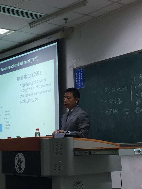 赵老师讲解的第一个案例是中材国际天津子公司印尼代表处代扣税争议案件。赵老师认为分析这个案件应主要关注三个问题:一是中材国际天津公司在印尼代表处是否满足印尼常设机构的认定条件;二是利润归属问题;三是计算方法问题。赵老师首先从常设机构认定的关键要点(场所、经营活动、控制以及固定性)对该代表处进行分析,认为其确实构成常设机构。接着,赵老师认为应进一步分析利润归属问题,即确定归属于常设机构的利润。赵老师从税收协定入手,找到利润归属中的争议点:一是常设机构是否视为独立企业;二是是否遵循独立交易原则;三是一般反避税问题。同时,赵老师认为利润归属还与常设机构的功能、风险有关。这里的功能指的是“人”的因素,即常设机构人员的数量、质量及所处岗位;风险是指决策由谁来做,诸如合同违约等风险由谁来承担。赵老师通过对该案例的分析,帮助同学们复习了有关常设机构认定的知识,同时同学们也掌握了企业设立常设机构时应注意的问题。