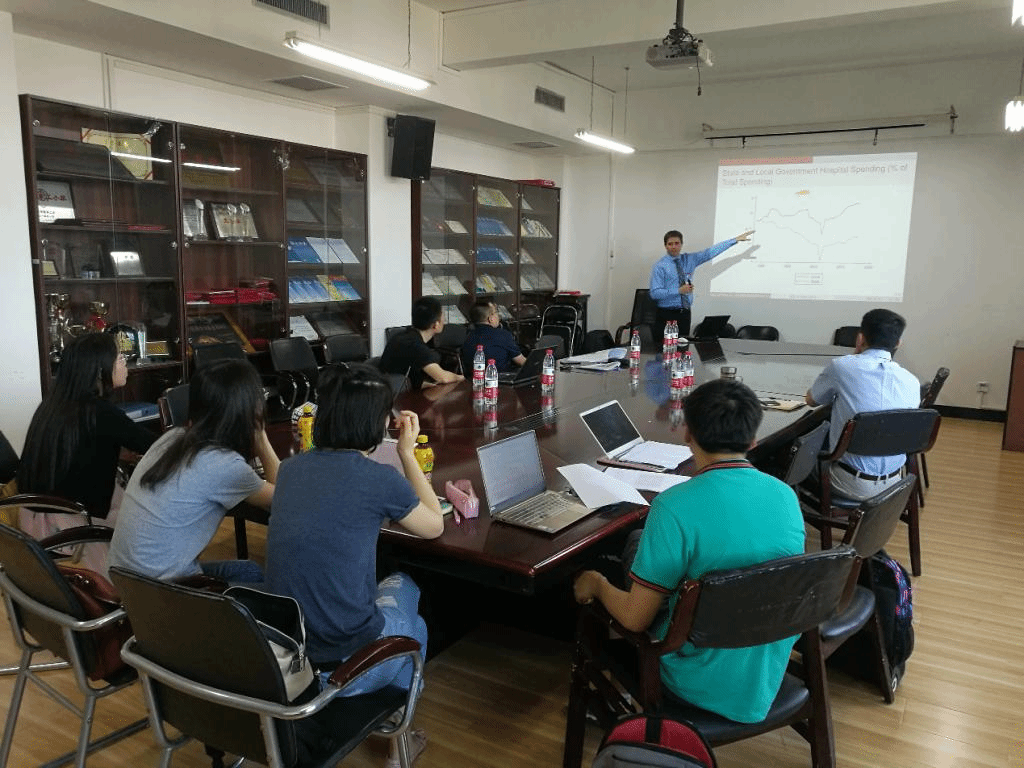 5月30日下午美国印第安纳大学公共和环境事务公司Justin MichaelRoss教授在主教1108会议室作题为“地方政府能否代表选民偏好?——基于地方政府平价医疗法案的研究”讲座。Justin MichaelRoss教授担任印第安纳大学地方政府治理协会主席,其研究领域为地方政府治理、社保改革等公共财政领域。讲座由永利集团官网总站樊勇教授主持,永利集团官网总站部分教授和博士、硕士生参加了此次讲座。
