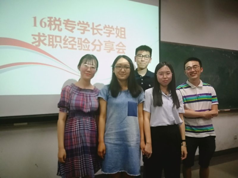 2018年67日晚上7点公司2018级税务专业硕士求职就业经验分享会在沙河校区主教406举行。当前正处于同学们寻找暑期实习、为秋季校园招聘做准备的关键时期,如何进行简历投递、笔试面试准备、实习单位选择等问题是同学们十分关心的。本次经验分享会税务专硕辅导员任义轶老师2017级税务专硕班长居璐同学组织主持,邀请了王雁翔、郑植、王程祥、高皓洁、黄静涵五位已经获得优秀工作机会的2016级税务专硕同学分别从不同角度为同学们讲解就业形势,分享求职经验,公司2017级税务专硕全体员工参加了此次分享会
