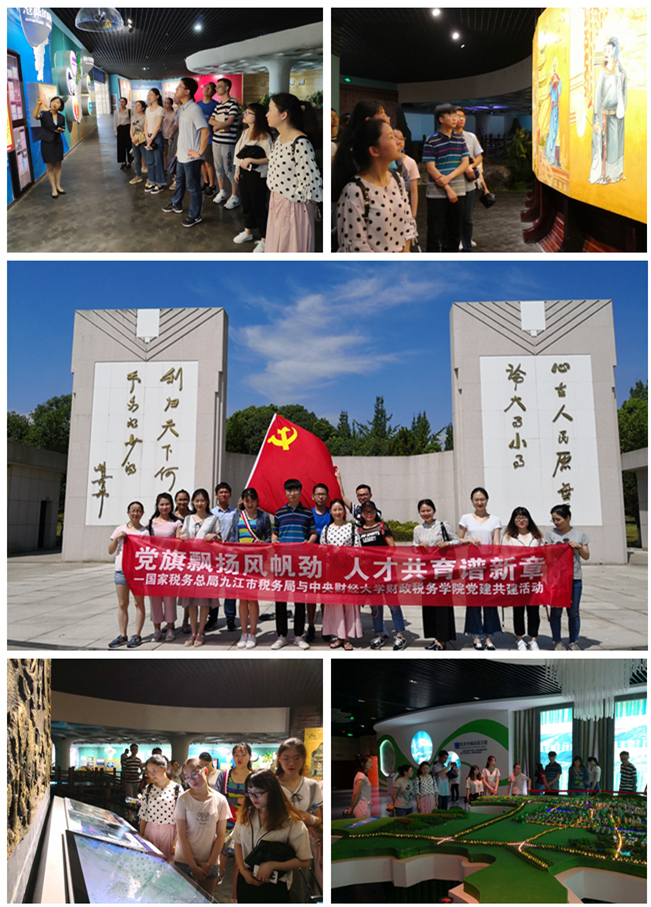 实习期间九江市税务局的同志们特地与永利集团官网总站的师生们共同开展了党建活动。7月17日,在九江市税务局同志们的带领下,同学们前往共青城市参观了耀邦陵园、鄱阳湖生态经济区规划馆和义门陈遗址。通过此次活动,同学们对老一辈无产阶级革命家胡耀邦同志的生平事迹有了深入了解,对 “心在人民,原无论大事小事;利归天下,何必争多得少得”这句体现优秀共产党员博大胸怀的名言记忆尤深。在鄱阳湖生态经济区规划馆,同学们对江西的风土人情,政策规划等有了进一步的体会。在义门陈遗址,同学们领略了传承优秀家风的重要性并深切感受到“义门陈”所蕴含的优秀传统文化。