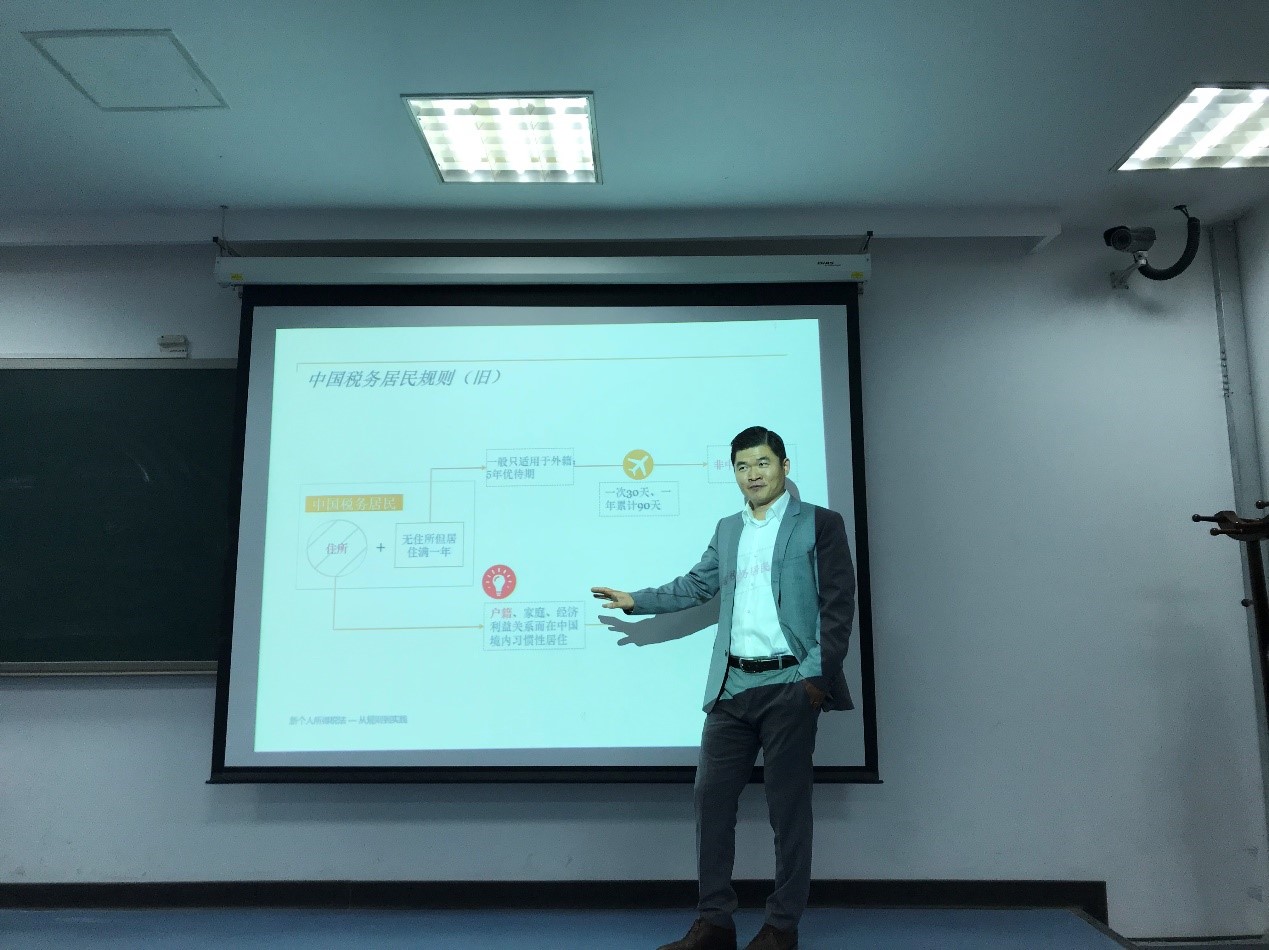 本次案例研讨课的主题是个人所得税法---从规则到实践。首先,杨老师为同学们介绍了在中国个人所得税改革的背景下中国税收居民规则的变化。这主要体现在我国税收居民的判定标准由之前的“无住所但居住满一年”改为“无住所但居住满183天”。这一规则的变化对于高净值人士来说具有较大影响。杨老师指出,新个税法采用183天作为税务居民规则是符合公平原则的,就如同2008年《企业所得税法》将内外资企业所得税合并以及取消了外资企业的超国民待遇,个人所得税法也由于“借鉴国际惯例”,不可能再为外籍护照身份规定超国民待遇。同时,杨老师具体分析了户籍、家庭关系、经济利益关系如何具体判断和适用。此外,杨老师阐释了避税规则的制定多针对于企业,而个人所得税国际方面的规则较少,在实践中,也出现了许多个税处理原则适用企业规则的情况。