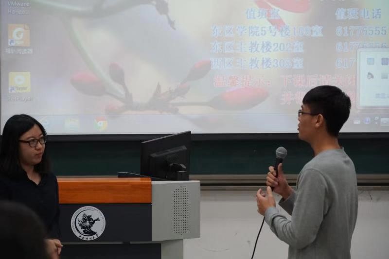 随后,2018年德勤税务精英挑战赛季军队获奖者寇程恺同学与颜静雯同学进行了经验分享,讲解了德勤比赛相关流程,并分享了他们在比赛中的准备方法与赛后收获。