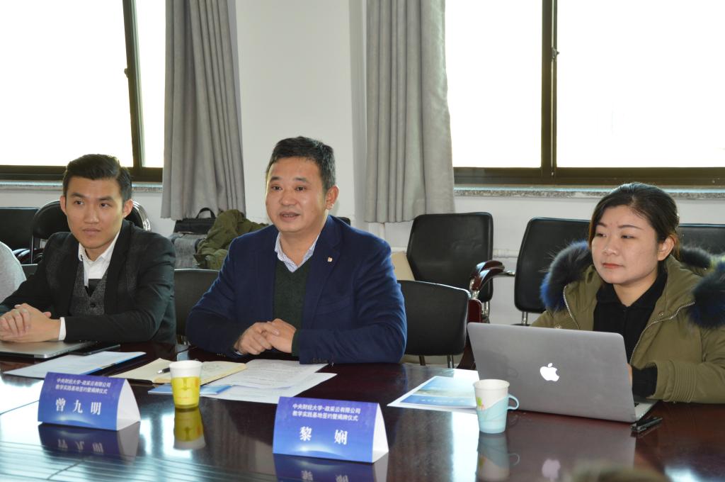12月21日,永利集团官网——政采云有限公司教学实践基地签约揭牌仪式在公司公司南路校区主教1108室举行。来自浙江政采云有限公司业务发展部负责人曾九明先生、业务发展部品牌管理部负责人陈熠熠、业务发展部市场品牌高级专家黎娴女士、业务发展部市场品牌专员张睿骞女士,公司副经理肖鹏、何杨老师,本科教务干事庞淑芬老师、研究生教务干事李严波、任义轶老师参加了本次签约揭牌仪式,并就未来永利集团官网与政采云有限公司在教学、科研等方面的合作事项展开研讨交流。