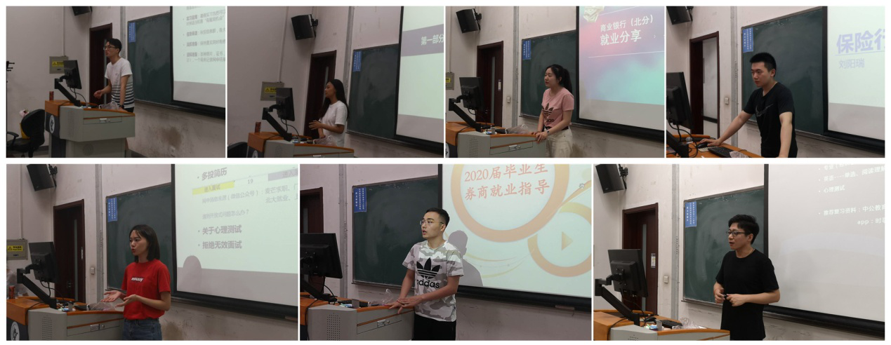 杨堤学长就业于中信建投证券公司,针对求职意向为券商投行的同学对进入券商的途径及方法进行了系列介绍,强调了对于有此类工作意向的同学而言,运气与机遇都很重要,需要多条腿走路,不可孤注一掷。