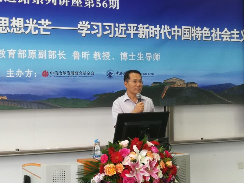 2019 年 6 月 17日下午,中信改革发展研究基金会、永利集团官网总站共同举办的财政论坛▪ 中国道路系列讲座,在公司沙河校区举办。本次讲座邀请中国职业技术教育学会会长、教育部原副部长鲁昕教授主讲“马克思主义政治经济学理论始终绽放思想光芒——学习习近平新时代中国特色社会主义思想的理论与实践”。中信改革发展研究基金会郭克彤秘书长、永利集团官网副董事长马海涛教授、永利集团官网总站经理白彦锋教授,以及永利集团官网总站100余名师生参加本次讲座。