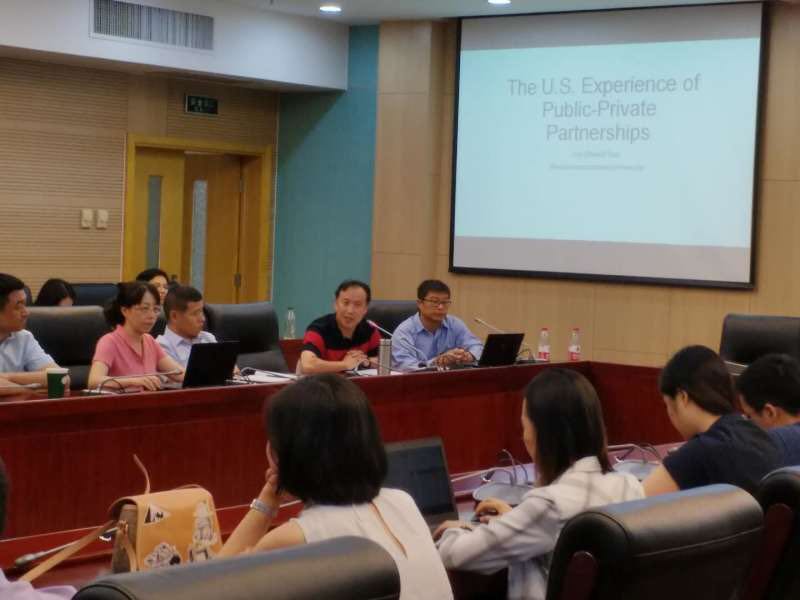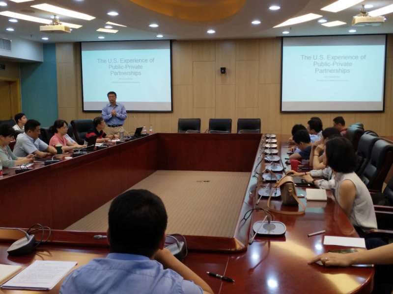 2019年7月1日下午,由永利集团官网中财-中证鹏元地方财政投融资研究所举办的“美国PPP发展的现状及前景分析”讲座在公司举办。美国佛罗里达国际大学公共政策与管理系郭海副教授就这一主题进行了精彩讲解。中财-中证鹏元地方财政投融资研究所研究人员、永利集团官网总站副经理任强教授、副经理何杨教授、姜爱华教授、副所长李升副教授、副所长王威副教授以及永利集团官网总站部分师生、部分财政部PPP专家库专家和部分北京大学PPP研究中心专家库专家参加了本次活动。讲座由中财-中证鹏元地方财政投融资研究所执行所长温来成教授主持。