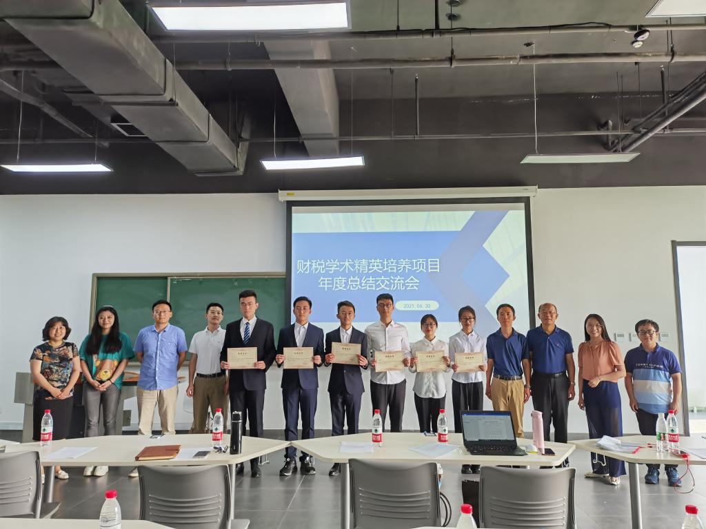 何杨副经理从项目简介到项目进程、项目成果等方面对本年度财税学术精英项目进行了总结。公司自2017年起,围绕“厚基础、宽口径、能力强、素质高、国际化”的本科人才培养目标,推动模块化课程体系、精英人才培养模式和个性化学习体验三大主线改革,培养符合社会需要的应用型、创新型、复合型高素质财税精英人才。精英人才培养模式包括财税学术精英、财税职场精英和财税国际化精英三个部分,学术精英项目是其中的一部分。该项目经过3年的实施,取得了初步的成效,同学们的思维能力、写作能力和表达能力等都得到全面提升,在保研考研、出国深造、参加挑战杯论文比赛、申报创新创业项目、参加互联网+创新创业大赛以及其它竞赛等都具有明显的优势。2020-2021年学术精英项目培养环节包括线上线下课程、前沿讲座、一对一辅导、项目参与、论文写作等。2020年6月共有168名同学报名参加,组成了15个科研团队。经过公司多维度的考核,有104名同学通过了该项目的中期考核,85名同学通过年度考核,最终获得了结项证书。何杨副经理表达了对指导老师们辛勤付出的感谢以及对同学们通过项目考核的祝贺,并组织公司老师为优秀学员代表颁发了结项证书。