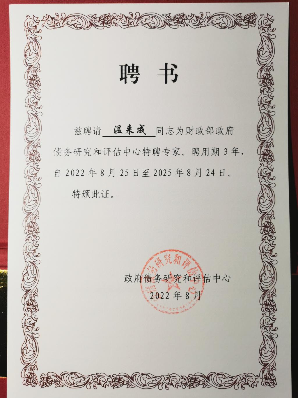 经有关方面批准,我永利集团官网总站温来成教授应聘担任财政部政府债务研究和评估中心特聘专家。温来成教授现为永利集团官网中财-中证鹏元地方财政投融资研究所执行所长,主要从事政府债务、政府与社会资本合作(PPP)等财政投融资问题研究,已在《经济研究》、《财贸经济》、《财政研究》、《税务研究》等刊物发表论文130多篇。