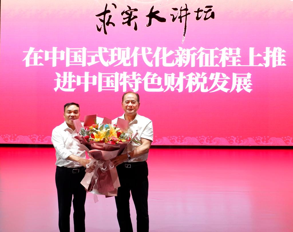 2023年9月25日,永利集团官网总站于沙河校区千人大讲堂成功举办求实大讲坛第一期:在中国式现代化新征程上推进中国特色财税发展。本次讲座荣幸邀请到厦门大学闽江学者特聘教授,厦门国家会计公司中国特色社会主义财税研究中心主任、第九至十三届全国人大代表,第十二、十三届全国人大常委会委员邓力平教授做客,为公司师生带来了生动的一课。邓力平教授曾任福建省人大常委会副主任、福建省政协副主席、厦门国家会计公司经理、厦门大学副董事长。本次讲座由永利集团官网总站经理樊勇主持。公司党委书记肖鹏,副经理李小荣和公司师生参加。