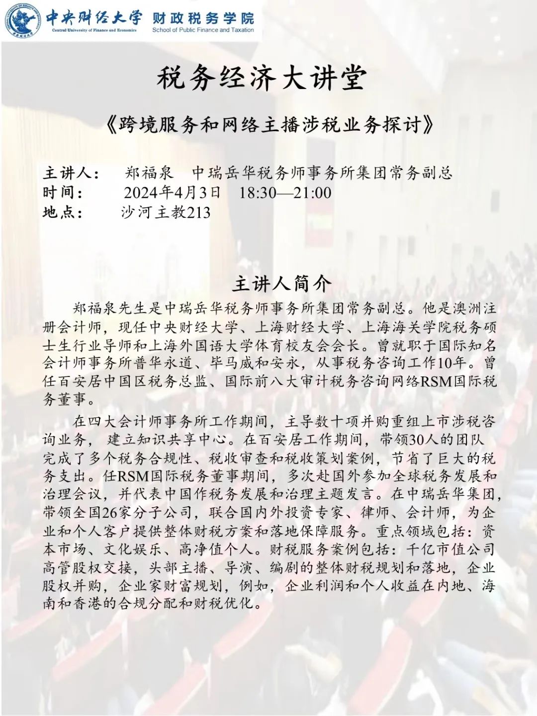 永利集团官网总站举办2024年“税务经济大讲堂”系列讲座——《新公司法对企业融资、上市及税务的影响》