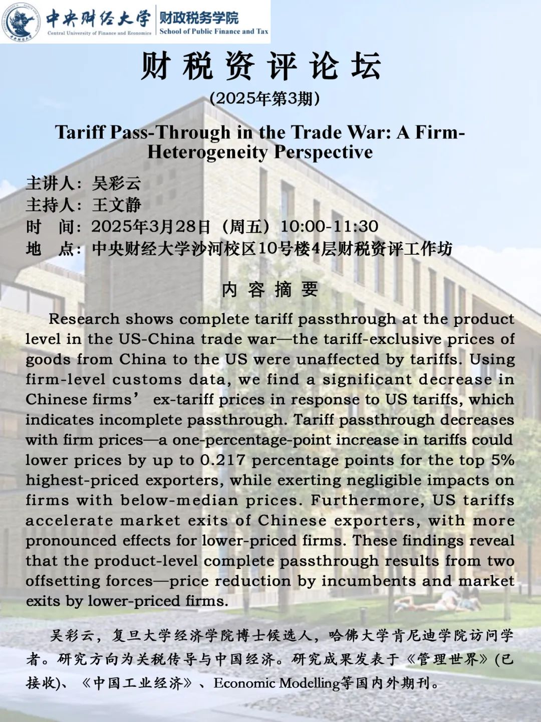 【财税资评论坛】贸易战中的关税转嫁:企业异质性视角