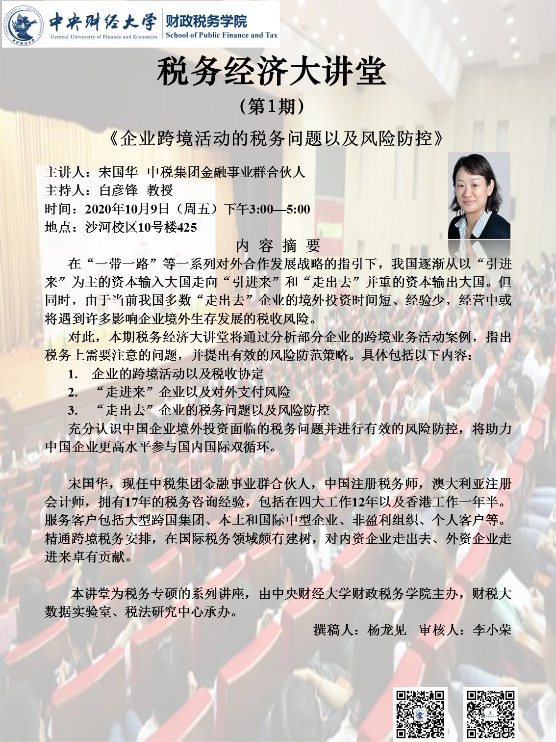 【税务经济大讲堂】《企业跨境活动的税务问题以及风险防控》