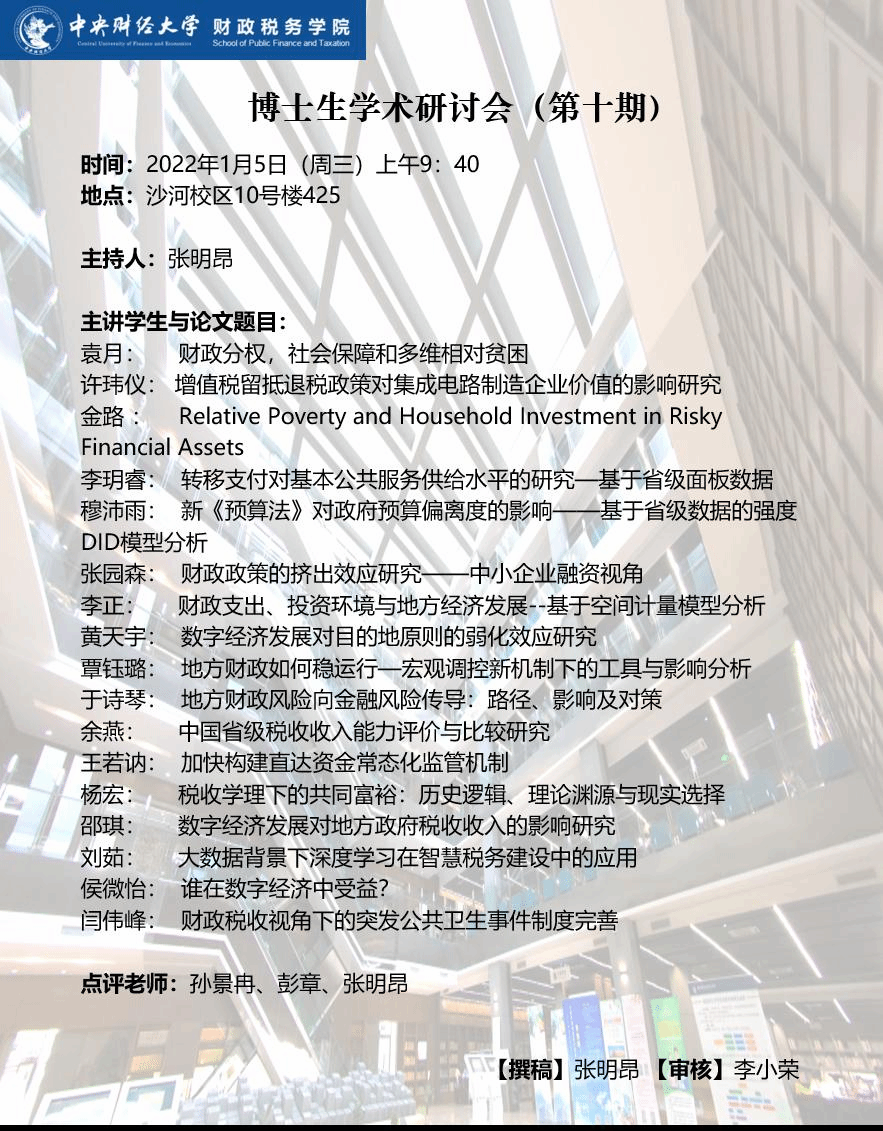 博士生学术研讨会(第十期)
