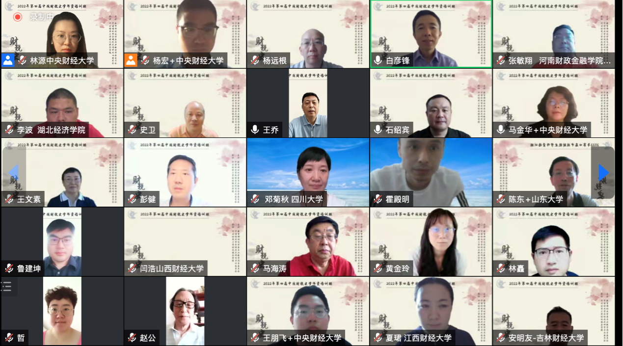 名本届中国财税史学团队培训班学员参加了线上结业仪式。