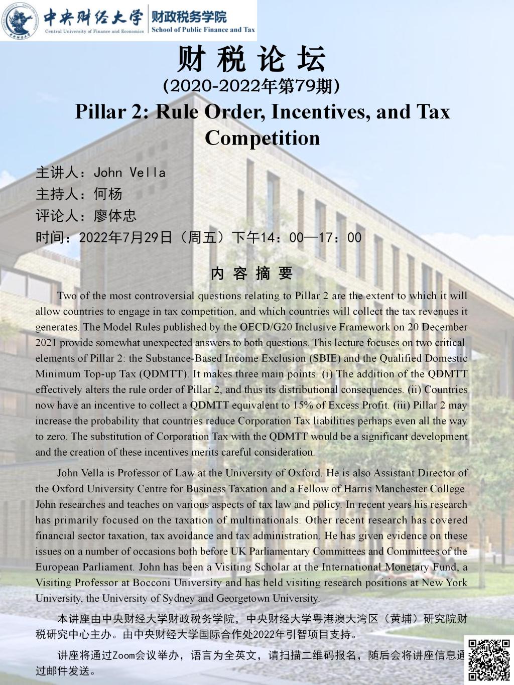 【财税论坛】Pillar 2: Rule Order, Incentives, and Tax Competition