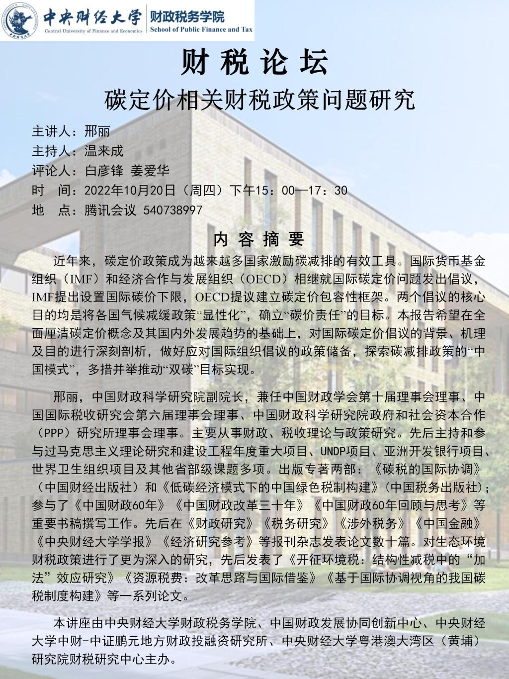 【财税论坛】碳定价相关财税政策问题研究