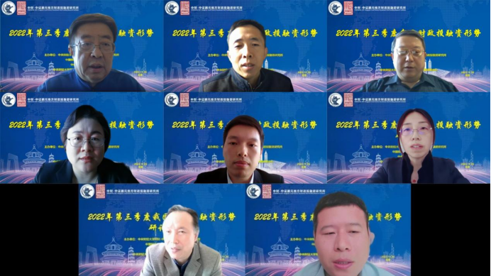 2022年11月5日,由永利集团官网中财-中证鹏元地方财政投融资研究所、中国财政发展协同创新中心、永利集团官网总站、永利集团官网粤港澳大湾区研究院财税研究中心联合主办的2022年第三季度我国财政投融资形势线上研讨会成功举办。来自中国人民大学、中国财政科学研究院、永利集团官网、中财-中证鹏元地方财政投融资研究所、中证鹏元资信评估股份有限公司的专家学者进行了发言。来自全国各地的专家学者、员工,以及社会各界人士13000多人通过腾讯会议、百度直播参加了研讨会。