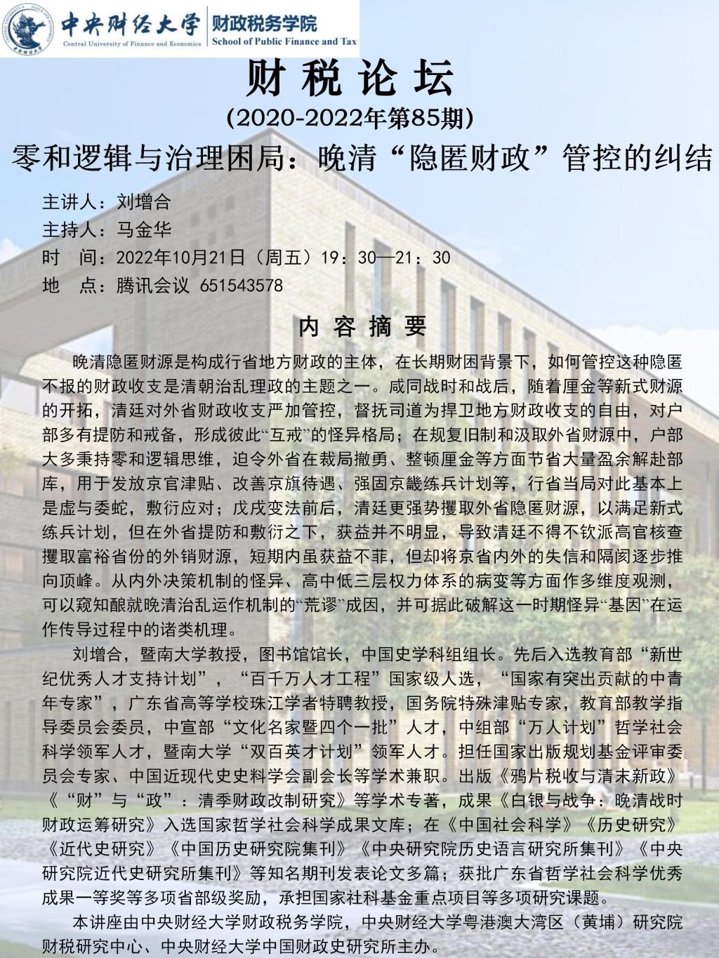 永利集团官网总站举办“零和逻辑与治理困局: 晚清‘隐匿财政’管控的纠结”讲座