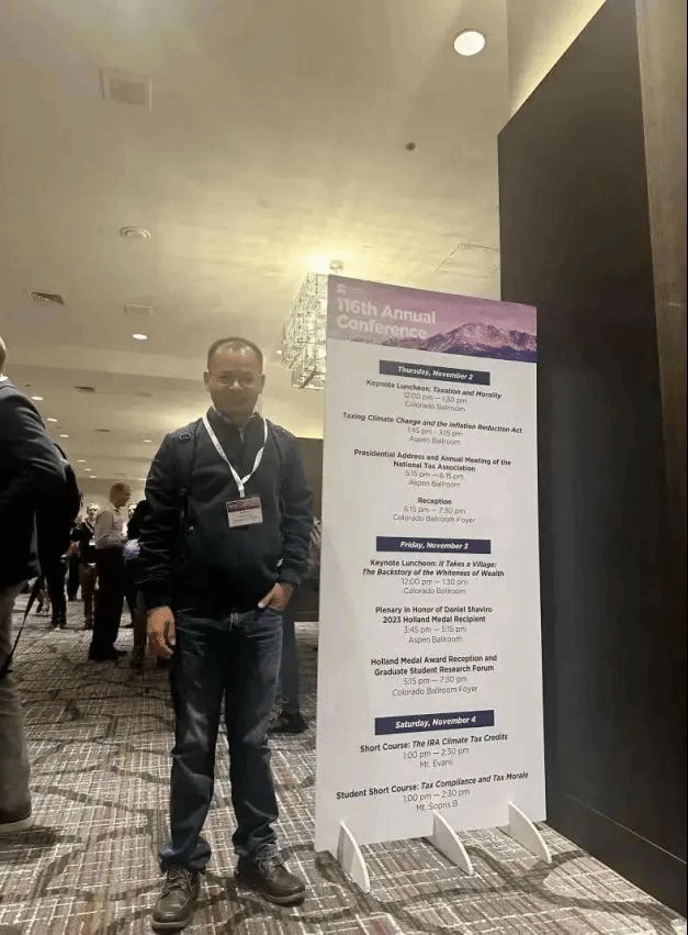 2023年11月2日至4日,永利集团官网总站寇恩惠副教授受主办方邀请,参加在美国科罗拉多州丹佛市举行举办的第116届美国税收年会(116th Annual Conference)。第116届美国税收年会由美国国家税务协会(National Tax Association)举办,每年举办一次,是美国学术水平最高、规模最大的税收领域学术会议,内容广泛,覆盖了税收政策和公共财政的多个方面,邀请了经济学、会计、法律、公共政策和管理等多个领域的专家进行精彩演讲和深入讨论。