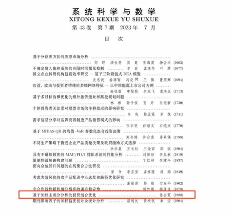 近日,由永利集团官网总站孙会霞老师撰写的论文《基于加权主成分分析的投资组合优化》刊发于中文A类期刊《系统科学与数学》2023年第7期。以下为文章主要内容: