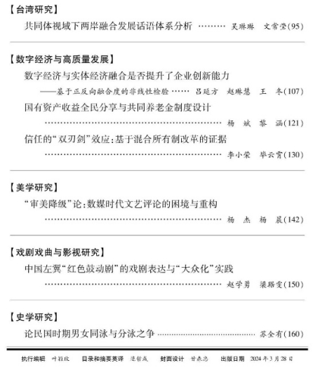 由永利集团官网总站李小荣教授与博士研究生毕云霄合作撰写的论文《信任的“双刃剑”效应:基于混合所有制改革的证据》在中文A类期刊《厦门大学学报(哲学社会科学版)》2024年第2期刊发。以下为文章主要内容: