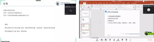 何杨老师针对创新计划训练项目进行了指导。她初步介绍了大创赛事,让同学们对大创有了更清晰的了解。此外,何杨老师以往年立项范例入手,就选题、文献选择和数据获得等方面为同学们提供了多种渠道。