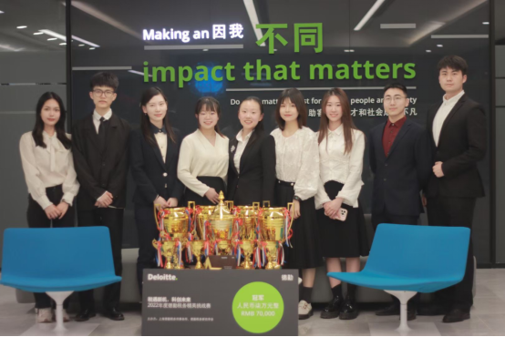 2023年4月18日,第18届德勤税务挑战赛举行了隆重的颁奖仪式。永利集团官网总站派出的李函育、刘书妤、周宇翔、滕明璨、童梦瑶、姚荔婷、纪浩然、任紫娴八名同学,与商公司郭湘同学、会计公司余尚同学一起组成两支队伍参加比赛。经过激烈角逐,由李函育、刘书妤、周宇翔、郭湘组成的队伍1荣获2022德勤税务精英挑战赛冠军,由滕明璨、纪浩然、童梦瑶、姚荔婷、余尚组成的队伍2荣获2022德勤税务精英挑战赛卓越奖,纪浩然同学荣获最佳方案奖,任紫娴同学作为个人赛道的选手与北京大学团队赛道的选手组队荣获2022德勤税务精英挑战赛亚军。