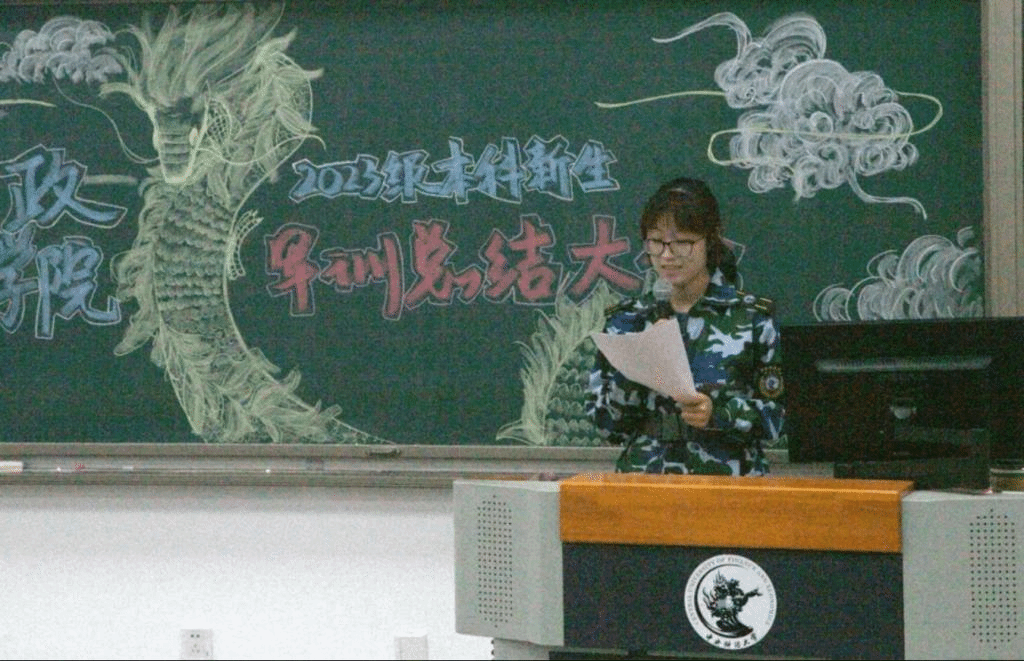 大会第三项,班主任邵磊老师发言。邵磊老师对战胜了疲惫与困难,坚持刻苦训练的财税23级新生们提出了表扬。同时,邵磊老师也为新生们送出了祝福与期待:军训时的收获成长与未来的老员工活息息相关,希望同学们能够将不怕困难、敢打硬仗的精神延续到后面的学习生活中,度过多姿多彩的大学四年。