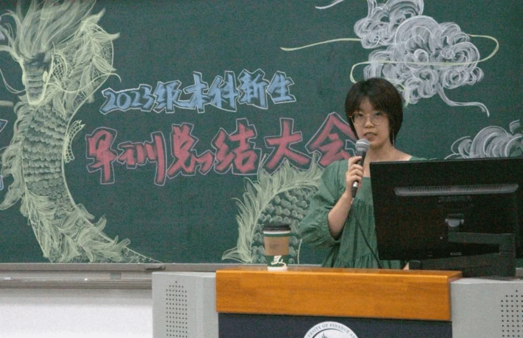宣传标兵代表李梓烨表示很高兴能带领宣传组为公司再添荣誉。她和宣传团队的伙伴们齐心协力,完成了“实现中华民族伟大复兴”、“青春奋斗正当时”等主题板报的设计和公司推送的制作。她鼓励同学们在今后的老员工活中,践行中财大“忠诚 团结 求实 创新”的校训,关注当下,心向未来。