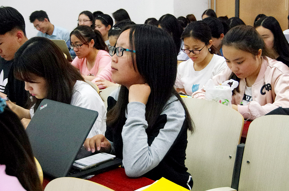 首先,肖鹏老师以大创评审的身份就如何撰写大创申报书向同学们进行了详细的说明。肖鹏老师先介绍了创新项目申报书的书写要点以及成功的申报书所具有的特质。研究目标的选择要清晰明确,选择一个较小的切入点,切忌选题过大过难。研究要有大量的数据支撑,对选题进行深入挖掘,注意语言准确,避免模糊。论证过程要注意方法和理论的创新性,着重体现研究的理论价值和实践意义。关于怎样使申报书更具亮点,肖鹏老师也根据自己的丰富经验给出了合理化建议。申报书最能吸引眼球的是标题和摘要部分,标题要精炼准确,摘要应高度凝练论文的内容。呈现自己的框架时可以采用图片表格等形式,以使论文的脉络更加清晰。而后肖鹏老师也对创业项目提出了几点建议。创业项目与创新项目有所不同,评委更注重项目的可操作性和盈利模式,同学们应在申报书中就这两点进行充分的展示。