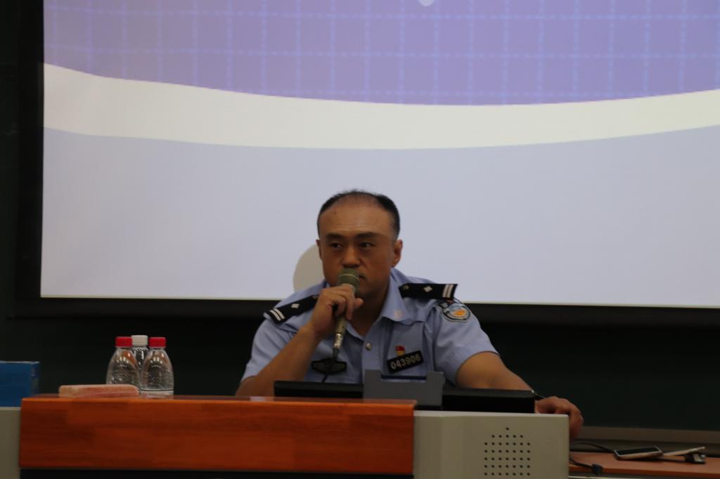 常警官特别介绍了电信诈骗。通过近期发生的重大案件和典型电信诈骗手段的举例,加强了同学们预防电信诈骗的警惕意识,并就如何识破骗术总结了十条经验。