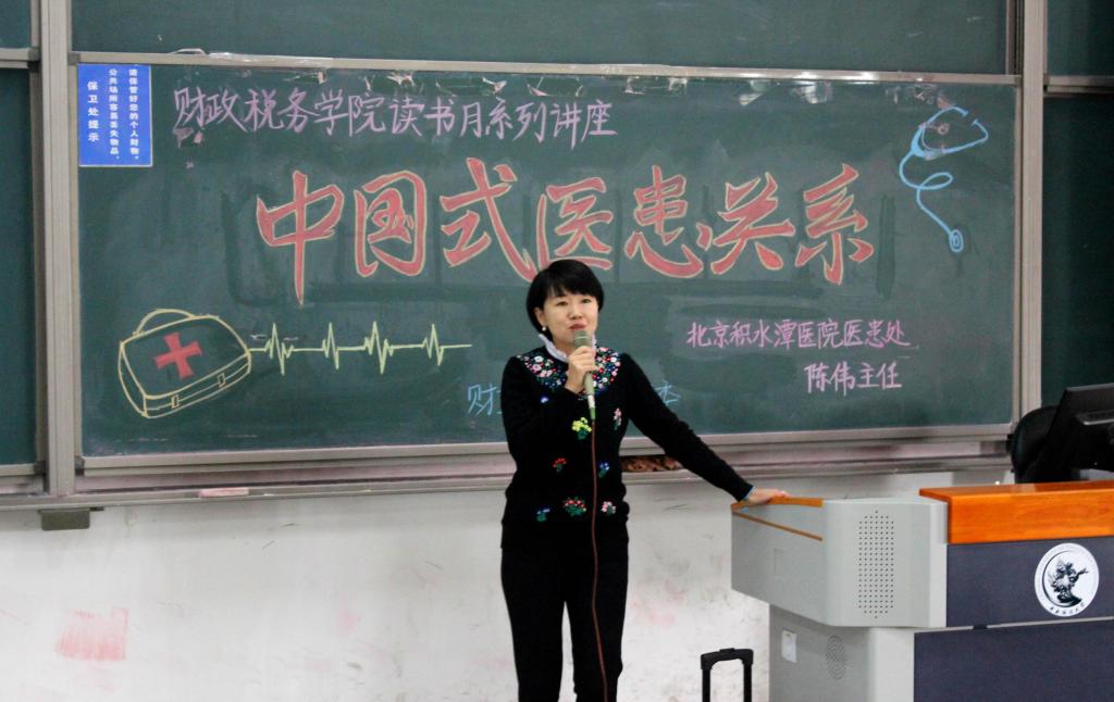 11月22日下午两点,永利集团官网总站在永利集团官网沙河校区东区主教216举办了第八届读书月系列讲座之“中国式医患关系”讲座。本次讲座邀请到了北京积水潭医院医患处主任陈伟主任,与大家分享她对中国式医患关系的理解和感悟。公司党委副书记宋立岩老师、团委副书记陈颖老师出席了本次讲座,全体本科同学参与其中。