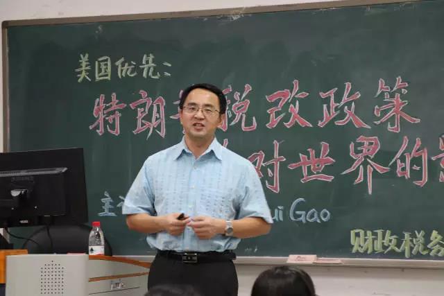 随后,高教授简单介绍了美国社会经济现状,给同学们分享了求学时的亲身经历。美国社会经济现状可概括为贫富差距大、企业利润滞留海外、实体经济空心化等。他还给同学们科普了美国原有税制,为特朗普税改做铺垫。