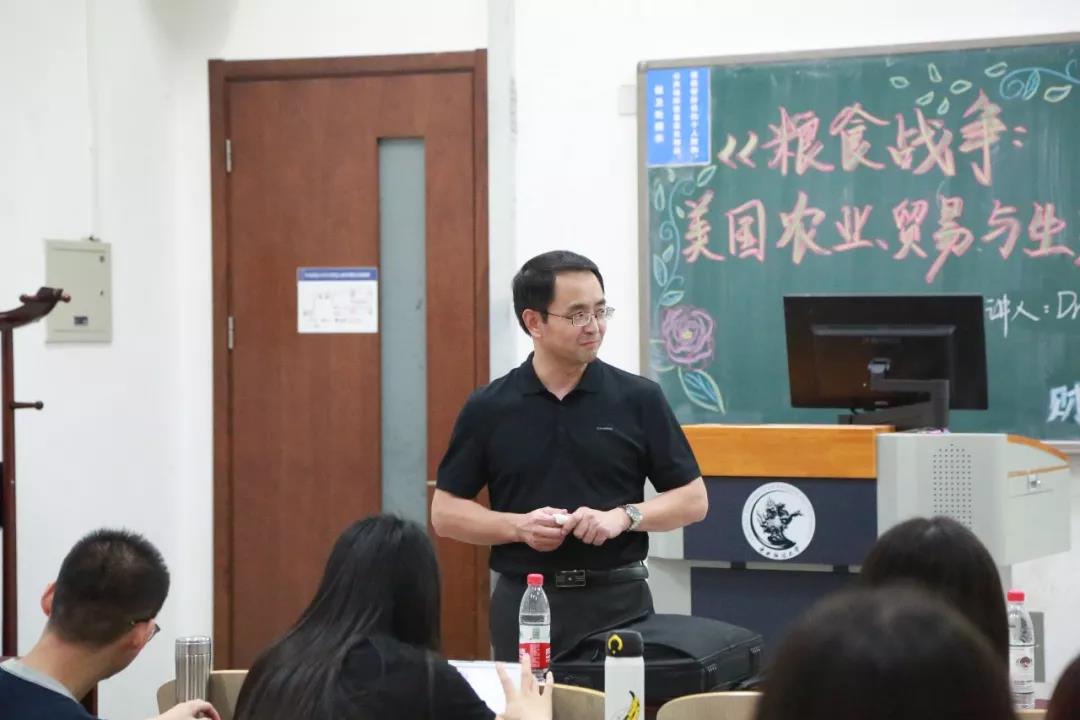 5月29号晚上7点,在沙河校区东区主教213教室迎来了高明辉教授关于美国经济的第二场讲座——“粮食战争:美国农业科技,贸易与产业链”,永利集团官网总站副经理任强教授,院团委副书记陈颖老师和各年级本科生和研究生参加了本次讲座。