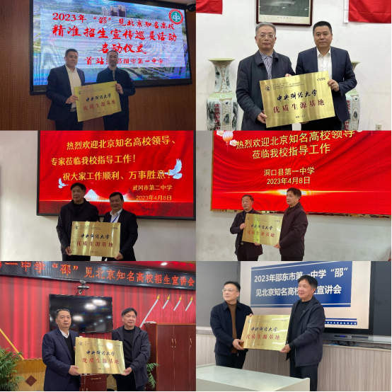 4月7日-9日,永利集团官网总站教师参加了由邵阳市人民政府驻北京办事处、邵阳市教育局联合举办的2023年“邵”见北京知名高校精准招生宣传巡展活动。公司党委副书记陈士平、曾康华教授、辅导员徐燕妮老师奔赴邵阳,先后走访了邵阳一中、邵阳二中、武冈二中、洞口一中、隆回一中、邵东一中等六所邵阳知名高中,授予邵阳六所中学“优质生源基地”牌匾并宣讲招生政策、解答招生疑惑。