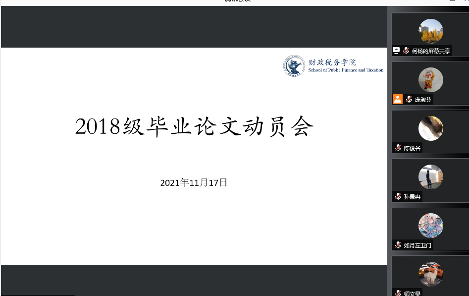 11月17日下午,永利集团官网总站2022届毕业生毕业论文动员大会通过“腾讯会议”以线上会议的形式顺利举行。此次会议的主要目的是向2022届本科毕业生介绍毕业论文相关事宜、大致时间安排、基本流程,让毕业生了解毕业论文的重要意义,准确把握学术论文规范、合理安排论文进度。参加本次会议的有副经理何杨教授、财政管理系孙景冉老师、资产评估系彭章老师、公司教学科研办公室庞淑芬老师以及2018级的全体本科生。此次会议由何杨副经理主持。