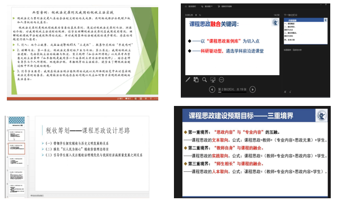 高萍教授结合《税法》课程,就课程思政建设如何融入在专业课程之中,以及在建设课程思政过程中对教师的要求进行了分享。王文静副教授结合《税收筹划》和《外国税制》课程,以学情分析结果为起点,就课程教学中员工对税法背后的政策背景了解不足、对避税和逃税等相关基本概念了解不足等问题为起点,对课程思政建设的思路进行了分享。肖鹏教授结合《政府预算管理》,分享了将案例库构建和课程团队成员的科研工作融入课程思政的相关经验。李贞教授结合《财政学》课程,分享了财政学与课程思政建设的关系,将课程思政融入财政学能够提升财政学的视野和教学效果,更好地实现财政学的教学目标和对财政学专业员工的人才培养目标。孙鲲鹏副教授《税收筹划》课程以思政建设为基础,从宏观要求和微观案例的角度,结合案例教学、教研结合、数字技术支持等方面进行了分享。王小荣副教授结合《国有资产管理与评估》课程,分享了如何挖掘资产评估专业硕士的课程思政元素,以及如何更好使员工接受和理解国有资产管理评估实践中的课程思政问题。
