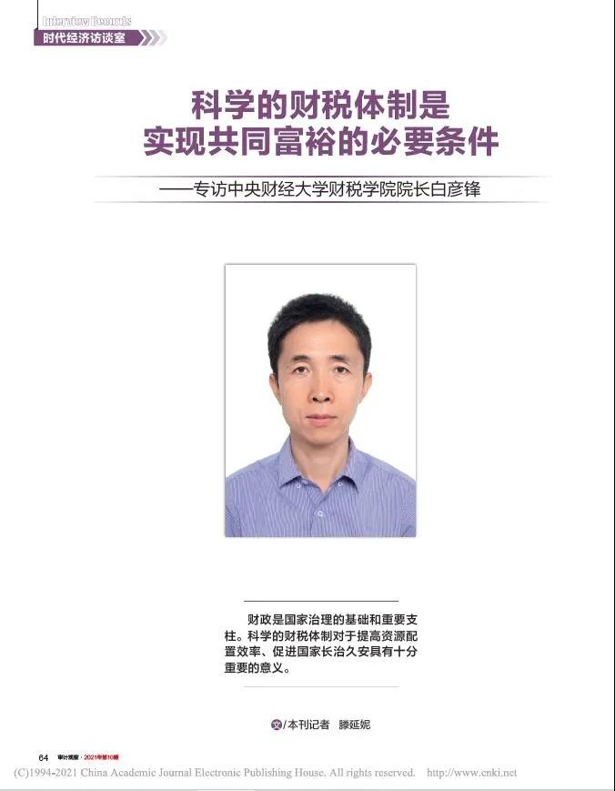 2021年10月,永利集团官网总站经理、中国财政发展协同创新中心主任白彦锋教授就“科学的财税体制是实现共同富裕的必要条件”专题,接受了《审计观察》的采访。全文如下: