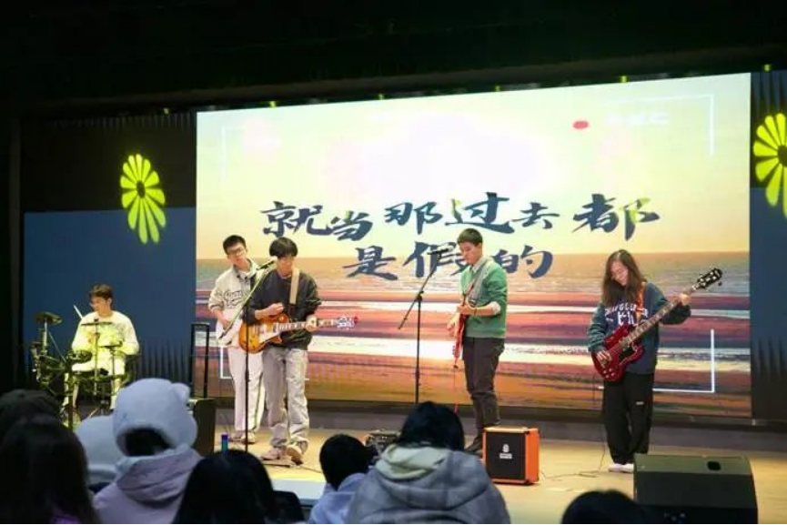 摇滚社成员给我们带来精彩表演,一声鼓响点燃了全场,也把全场观众的热情推向高潮。温暖与热血的两首歌曲中,我们聆听着、享受着,在音乐中狂欢。