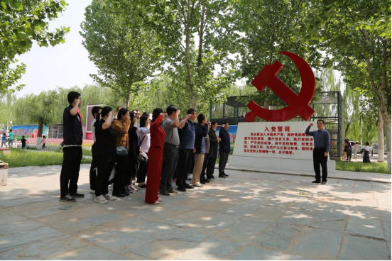 首先,公司党委书记肖鹏带领党员们重温入党誓词。入党誓词是共产党员最重要的承诺和责任,是每一名共产党员时刻不忘初心、牢记使命的基本准则。此举让在场的师生党员们更加深刻地认识到入党不仅仅是个人的选择,更是对党和人民的庄严承诺。